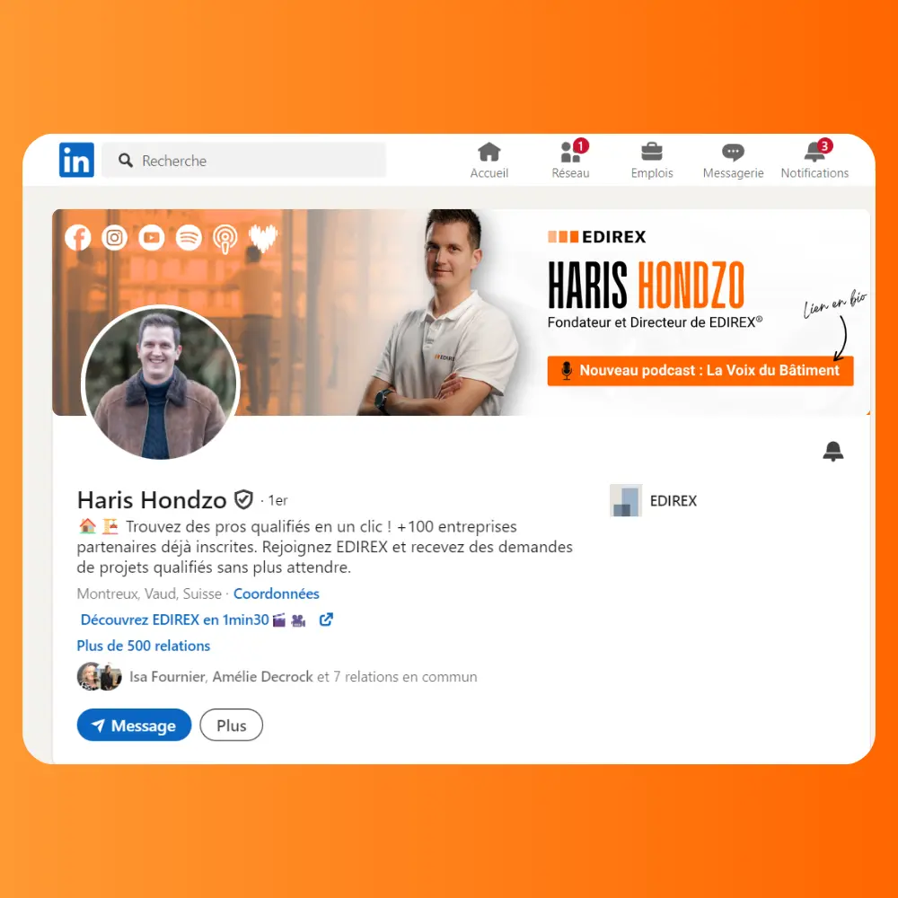 Haris Hondzo souhaitait lancer La Voix du Bâtiment, un podcast destiné à donner la parole aux acteurs du secteur du bâtiment, en partageant des expertises autour de la rénovation en Suisse romande. Le défi ne consistait pas seulement à produire un podcast, mais à en faire un véritable outil de positionnement.